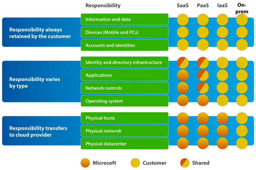 | Data Security | Physical security of the storage where customer data resides. | Encryption of data at rest and in transit, data classification, data loss prevention (DLP), and managing access to data. |